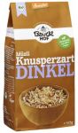 spelt flingor fin**, spelt flakes** (spelt**, rårörsocker**, havssalt, kornmalt**), spelt crunchy* (fullkorn stavas flingor*, rårörsocker*, palmolja*, ris*, fullkornsspeltmjöl*, kokos*, kornmalt*, majssirap*, havssalt), solrosfrön*, linfrön*, (*från kontrollerad ekologisk odling, **från kontrollerad bio dynamisk odling)